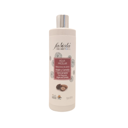Agua Micelar reductora de poros 500ml Enriquecida con extractos ecológicos de Argán y camelia y ácido hialurónico, el agua micelar de Fabiola limpia y desmaquilla suavemente dejando la piel suave y tonificada. Nuestra fórmula contiene activos que ayudan a reducir el tamaño del poro de la piel.