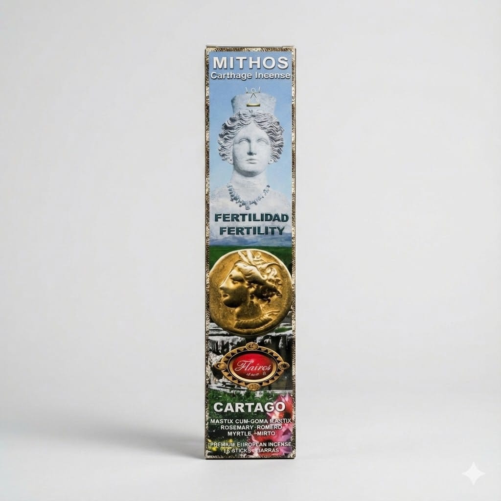 CARTAGO – Mithos Incense (Mastix, Romero y Mirto) Incienso Cartago de la colección Mithos. Fragancia herbal y fresca a base de mastix, romero y mirto; purificador, revitalizante y asociado tradicionalmente a la fertilidad.
